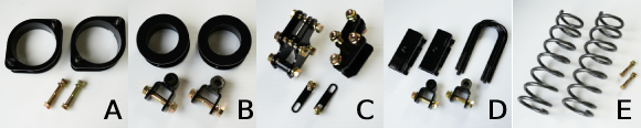 車種により若干構造や付属品は違いますが基本はフロントストラットソーサー、キャンバー補正ボルト、リアスプリングソーサー、リアショック延長アダプターの4点で車高を上げますので取り付けが簡単で、純正ショック&スプリングのストロークを活かし乗り心地変化が少ないのが特徴です。(個体差により車高測定/記載変更を行う場合がございます。)